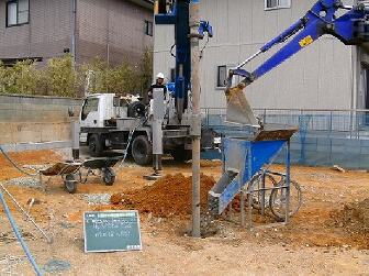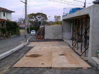 - 施工事例2 施工基面が道路より3m上がっており施工機械の荷揚げが必要 -